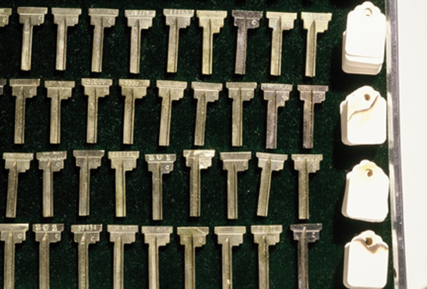 Side Show was a sculpture and video about personal reclamation. Street games, magic, and “the con” inspired the form and content. I collected 200 found hotel keys, ground off all of the teeth and ends and cleaned the edges of each one with brass polish. I then attached a price tag to each one using flash string and flash cotton, products from the world of magic that burn instantly without ash. The video documented the set up of the game and the final separation of the price tags from the unusable keys in a final flash of flame.